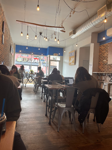 I’ve been wanting to check this place out to go work from, as it’s been rated well and not far from home. Went today for first time and I enjoyed the atmosphere, had a matcha iced tea with tamarind syrup (had them add milk to make it a bit creamy as it was more on the sour watery side than what I’m used to for matcha); my partner had an iced coffee. I will definitely return as I really would like to try their regular coffee, the place smelled amazing!!! They sell coffee bags there too, which would be kool to make at home if you’ve tried and loved the taste of their coffee. Reminded me of Gossip Coffee in Astoria. The great thing is they have plenty of outlets, pretty much at every single and double seating space. The tables for 4 in the middle of the cafe are the only ones without outlets. It was a bit chilly when we went today, as the back door was open to the outdoor seating, would’ve preferred it closed especially in 45-50 degree weather still. It’s nice to have that extra space out there though, esp when the weather gets warmer, definitely a plus. It faces the parking lot. The cafe overall is cozy and chill, great place to work, light a bit dim, cute decor, more of a rustic industrial feel which is my cup of tea. My partner felt like the seating was uncomfortable and hard, esp if going to be there for a couple hours to work like we were but otherwise, great place to check out and unwind at, over coffee or with a friend, to read, catch up on work, or just work from for the day. Today they were playing some hip hop music in the background, not sure if that’s the case always. They have some baked goods there to munch which we didn’t try, but maybe next time....