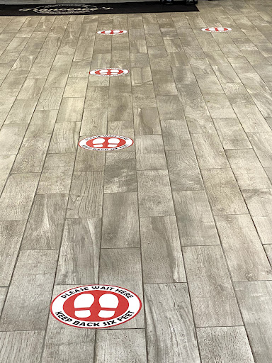 No seating arrangements. Corner to corner clean like a whistle. Clean design. Evokes confidence, shows that the business cares about health and safety in the new world.