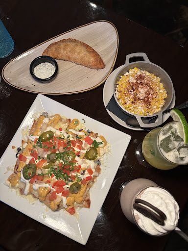 For appetizers, the Spanakopita Empanada was a clever twist on a classic, with a flaky, crispy exterior and a perfectly seasoned spinach and cheese filling. The Greek Style Nachos were a showstopper—crispy tortilla chips topped with tzatziki, feta cheese, and olives, adding a fresh, tangy layer to every bite. The Street Corn was another highlight, bursting with flavor, charred to perfection, and drizzled with a savory blend of cheeses and spices.