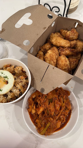 Today, I decided to give this place another try because I gave them the benefit of the doubt since when I last visited it was still new and still adjusting. This time I tried the same traditional soy garlic wings, spicy rice cakes, and kimchi fried rice. I am so upset and disappointed. Same thing with the wings⊠soggy and full of batter, not even the slightest crispy or crunch. Kimchi fried rice was not even red and tasted just like regular fried rice and not even spicy. (Iâve had this dish multiple times at other locations and itâs always been red with full of kimchi flavor). The rice was also seem to be over cooked since majority of the rice pieces are burnt with black crust. I did see bits and pieces of kimchi but the flavor definitely isnât there (maybe use stronger fermented kimchi). The spicy rice cake (Tteok- bokki) was good but the portion is extremely small for the price I paid. Sounds insane, but there was only 6 pieces of rice cake :( and majority of the dish was cabbage and onions which we didnât end up eating anyways⊠we paid for the rice cakes not for cabbage and onions. The dish came in a pint and 75% of the pint was cabbage onions and the soup.