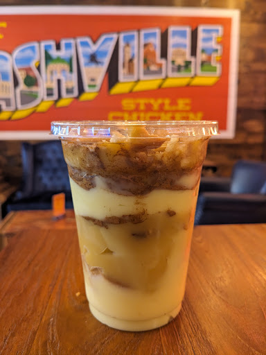 Read moreWent here on a Friday evening with the family. First, we were surprised by the confusing set up. It's essentially 2 sides to the restaurant - a bar side and a take out/eat in/lounge side (order your food at the counter and sit anywhere to eat). Tip: If you are going to enjoy the live music be sure to sit on the bar side. There is no view of liveusic from the lounge area. This was disappointing. Decor was excellent and vibe over all was good. The service was average. It was a bit annoying to keep going to the counter when our bbq sauce bottle (table side) ran out or when we needed extra plates or take out containers. Food was average at best. The pulled pork was unseasoned and had absolutely no flavor. The rib started out okay when warm but then it got dry and was not enjoyable. The brisket was okay. The onion rings had the fried skin falling off so we never got a proper bite. The chicken sandwich was also bland. Fried pickles were the only thing we finished. Everything else we could not finish eating so we packed it to go and seasoned it at home. The hand spun shakes were good. The banana pudding is not actually banana pudding. It's a layered parfait and did not hit the spot. We will not come back here for dinner but maybe for a drink...