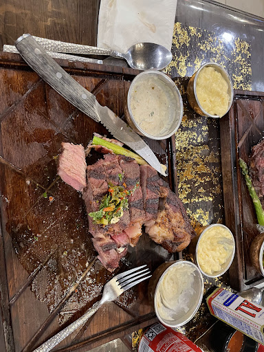 Now, onto the food. I had some hesitation about ordering the ribeye steak due to mixed reviews, but I decided to give it a try. The portion size and cut were decent, though I believe they could refine their approach to serving steak. Traditional steakhouses include sides with the meal, but here, they were offered at an additional charge. I also tried their BBQ platter, which was well-balanced with rice and skewers of beef and chicken. As always, their butter chicken was a standout.