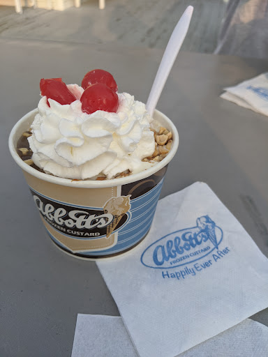 Read moreTheir "pup cups" are just a tiny scoop of vanilla ice cream..they said they didn't have any dog treats so they put a little dollop of whipped cream on top. For the same $2, I can get 1 at The Creamery and it comes with the treat AND peanut butter. The only reason we didn't go there was because The Creamery is only open Thurs.-sun. for some reason. Abbott's is obviously a "classic" for most people but their sizes are also super tiny compared to any other ice...