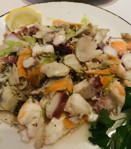 I showed up to dinner not all that hungry. A rookie mistake. The complimentary fresh bread, flat bread, olive oil and charcuterie consisting of savory cheese and dried Italian meat can be a meal onto itself. Then the actual entrees are always generously portioned (making for a wonderful lunch the next day). I know this. Like I said, this is my spot. But I showed up not very hungry. So I figured I would just order an appetizer and a salad for an entrée. I selected the scallops in truffle sauce (which by the way still has me uncurling my toes; the dish was poetry on a plate) and the Insalata di Mare, a seafood salad with scungilli, octopus and shrimp. I was expecting a field of green lettuce with a light sprinkling of assorted seafood. WRONG! What I received was a colossal heaping pile of fresh, delectable morsels gifted from the sea with a light sprinkling of green lettuce. Look at the photo! That was after I ate over a third of my dish, sat back and thought, “Who does this? Who gives you an entire seafood platter from the gods for just $16?! Make it make sense!” and then took the picture. I’ll tell you who, Sergio’s! Which is why I will keep...