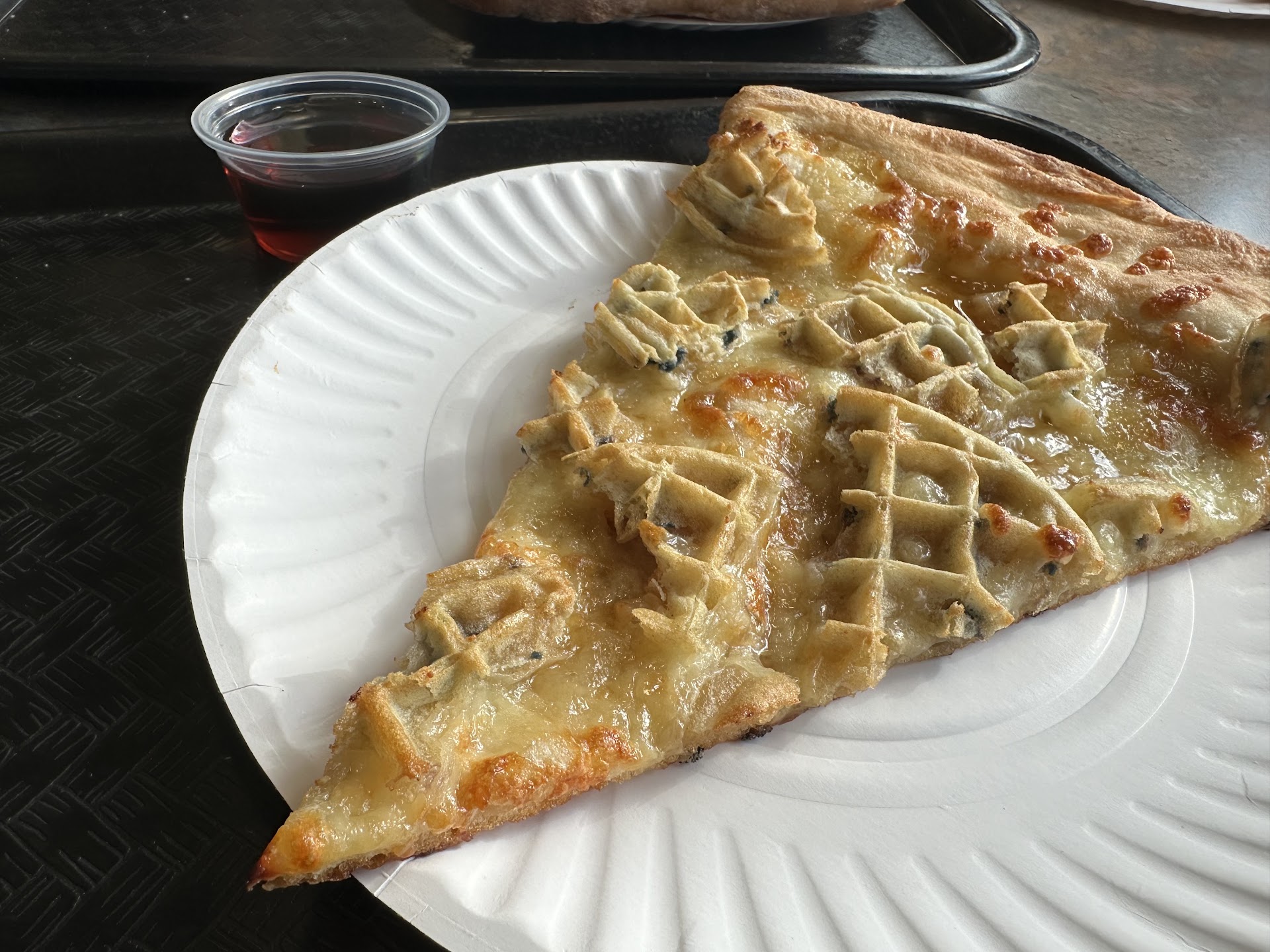 So I go inside, order a slice and 2 stromboli. Service was quick, friendly and polite. Really can't speak more highly of the staff. The atmosphere was small but welcoming enough for a quick casual date night.