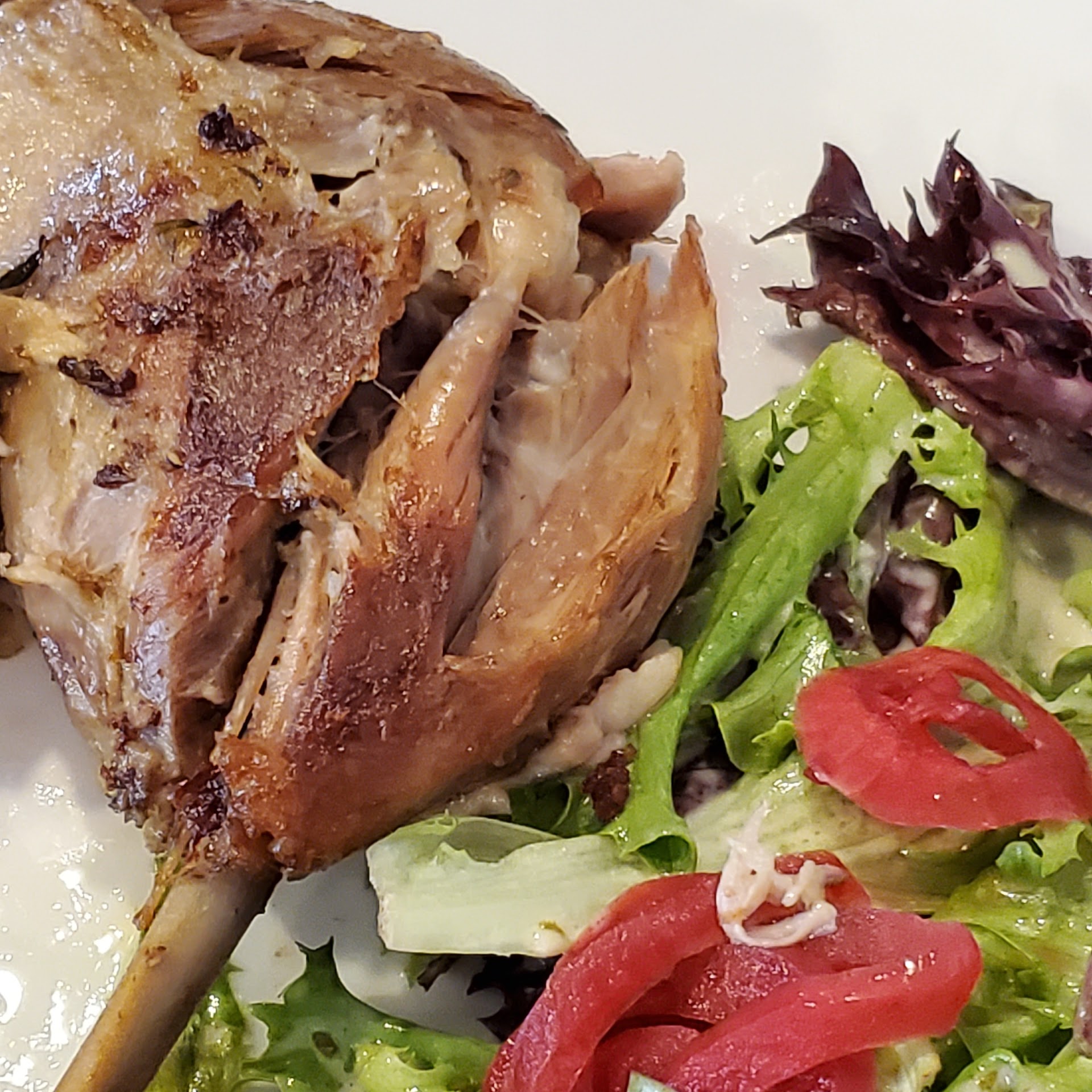 The atmosphere is also lovely. There is secluded outdoor seating for anyone pandemic conscious, or who just prefers some fresh air. The bar seating is comfortable, nice and clean. The dining room is larger than you might think from the road, and each room is well cared for and classy.