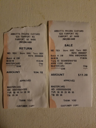 Read moreMy favorite ice cream. Frozen custard, to be exact. Creamy, smooth, delicious, and fresh. You can watch the ice cream being made right before your eyes as it is extruded from the maker machine. My favorite flavor of my favorite ice cream? Vanilla. Don't get me wrong. I love their chocolate, strawberry and mocha flavors, too. And, according to my favorite ice cream-eating companion, their fruity flavors, like black cherry and peach are great, too. I love lots of different flavors in my ice cream. But I think if you can make a vanilla that is flavorful enough to stand on its own, then you understand how to make good ice cream. And Abbott's does. I especially enjoy sundaes at Abbott's. I highly recommend the Peanut Butter Cup and Brownie...