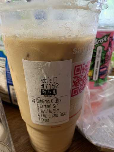 Placed a mobile order. Got to the drive thru and there was one truck in front of me. It took a long time to get her order taken. My turn. I roll up to the speaker, and wait.. and wait... still waiting. Finally I say, Hello?. The response i got was, "I will be right with u." So I wait and wait and wait some more. I was ready to cancel my order and leave. After 10 minutes (no exaggeration) I finally hear. "What can i get you" . So I pull around and the truck I front of me still is waiting to get her order. When they give it to her she doesn't leave. Oh they only gave her half her order. Finally my turn. Pull up and I am quickly handed my drink. She shuts the window and walks away.my drink is noticed. All the powder is in a clump at the bottom of the cup. After making another drink she comes back to the window to see why I am still there. I remi d her I had a half dozen donuts. (Mind u I didn't order a random selection. I picked which six I wanted). She throws in 6 random donuts. I am handed the bag and she again walks away. I look and see it is not what I ordered. She comes back and immediately says we are out of the donuts u ordered. (Oh so u just gonna give me some random ones and decide that was good enough) I tell the lady how disappointed I am. That the whole experience was awful. I say I will not be back. Her...