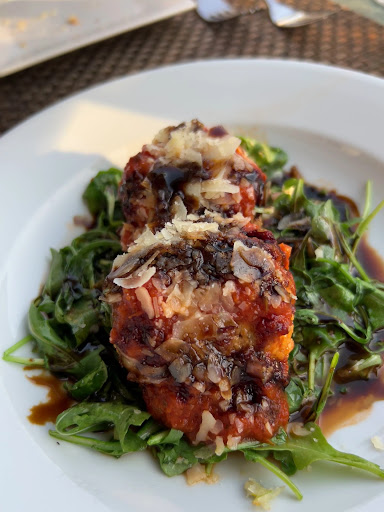 Overall, enjoyable late lunch on a beautiful Saturday thanks to the (mostly) polite staff and great location on the riverfront in cute Cold Spring lower village. Smooth reservation process online. Arrived on time at 2pm as the main lunch crowd was finishing. A table for 4 on the lovely balcony was open, and we were offered to sit there. Sun was just overhead so wasn't directly on us yet, so we took it- the view of the park, river and mountains were ideal. | The busser came to pour water and promptly spilled ice cubes all over us... no apology, just walked away and never returned. For 30 minutes we were then ignored by any wait staff while a waitress came over and over again to the table next to us who arrived at the same time as we sat down. As the table next door basically finished their meal, we had to go inside to ask the hostess to get someone to come provide service. Yikes. But, promptly another waiter Joshua came out and was fantastically attentive to us the rest of the meal. | About 30 min later, drinks and popovers and entrees consumed (all excellent- G&T, Bees Nees), the sun angle was now hitting the whole table, so Joshua helped us move to an inside table. The busser who spilled ice cubes on our table was still around, but despite leaving our empty glasses on the obvious corners of the table, she never came over to refill until we finally had to ask Joshua to help. | Salmon and burger were pretty good, open face steak sandwhich was a let down (steak was good, bun and presentation did not match) and the shoestring fries looked more like McD level. Don't go out of your way to give your fries a fancy label if they are going to disappoint.| Overall, as many reviews have said, the service can be good (Joshua) or poor. For us, it was both at the same time. Our food overall probably was not worth the inflated prices... but we knew we were paying for the location also, which we did find lovely. In the future, we all agreed that we would love to return to charming Cold Spring, and would even come back to the HH if we could sit on the balcony... perhaps for a 12 noon reservation to avoid the direct sun and be more selective with our food selection, especially if we were not starving and could handle some delayed service while we soaked...