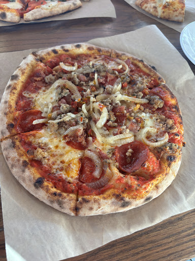 The pizzas were good. I would say itâs Neapolitan style which isnât my favorite but it was still good. The meat lovers had onions on it which I liked. The Buffalo chicken had good flavor to the sauce. And the margarita pizza I didnât get to try because Charlie ate the whole thing except the crust. She did allow me to eat the crust though!