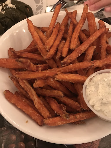 Olives is a Greek restaurant located next to the Erie Canal inside a block of unique artisian shops in Pitsford NY. The parking lot is a shared lot for the restaurants and shops. We dined for lunch on a weekday and the restaurant was busy although we did not have a wait time for a table and were seated immediately by our server who brought us menus and welcomed us. In the dining room a black board takes up the back wall space and it's where daily specials are placed for patrons convenience. We both ordered the Euro platter which had an assortment of meats home made pita bread grape leaves and rice. The platter was a large sized serving with plenty of extra food to bring home to enjoy for dinner. Appetizer of choice was the 3 dips with home made pita bread which was delicious. A order of Greek fries were added to our entree which were plenty to share. We both enjoyed the tomatoe and roasted pepper soup which was one of the soups which were offered. It was delicious with set my taste buds alive with the taste of roasted red pepper.I highly reccomend the Greek fries which were golden crisp and also sprinkled with plenty of good feta cheese. I'd also reccomend the Euro platter along with the 3 dip appetizer. Service was fast friendly and professional. Olives offered home made Greek food at its best! Also a nice assortment of desserts to choose from or maybe ordered to take home. Alcohol is served. My husband choice was a glass of Greek wine which he announced would be his choice next time we visit. Olives also offers a nice sized patio for outdoor dining. Thank you Olives for a most pleasurable dining experience. We look forward to...