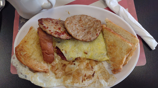 I pointedly and specifically asked the waitress if they had gluten-free bread products. She said yes, they have gluten-free toast. So I ordered the Philly cheese breakfast sandwich. Someone else brought it to the table on what was clearly NOT gluten-free bread (if you're gluten-free, you can recognize gluten-free bread when you see it), so I asked if this was gluten-free bread, and the person said, "No, she didn't say it had to be." So it got sent back and when it came back 15 minutes later, there was no egg on it. So then I had to wait for them to fry two eggs to go with it. That took another 10 minutes. Of course my friend was done eating by the time I got this sandwich, which was nothing to write home about whatsoever. And not because of the bread. It...