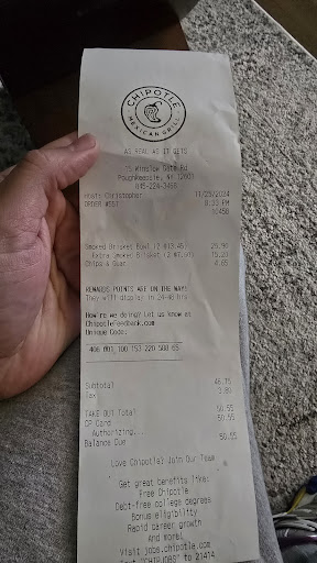 Read moreIt’s such a shame that this is so poorly run. I ordered online for a 5pm pickup. Stood there as they put orders on the pick up shelf and mine wasn’t coming out. 30 minutes go by and I ask the status, to which they hand me the bags from behind the counter that were out of sight. No explanation or apology. I proceed to check the items (as everytime I order here there are items missing from my orders) and find missing chips and salad dressing. When I politely asked for their attention and explained what I still needed they were clearly annoyed and stated they didn’t have those items. I said can I have a substitute for the dressing and if they had some salsa for if, they told me no (I could see it on the prep line). They told me to complain on the app for a refund and again, offered no apology. The woman was so dismissive and rude. Why doesn’t this website reflect when items are out of stock, similar to how Panera does? If items are out of stock it is often a determining factor as to if you will order from that establishment. By the time I got home this food was cold and inedible. Granted the place was busy as Marist kids were returning to school, but this should be accounted for when management is ordering and staffing the store. The place was a mess with chips on the floor and no straws at all. Trying to contact customer service at Chipotle proved to be an impossible task. There is no published phone number and you can only chat. It took me over and hour and explaining what had happened via chat and getting disconnected from different reps on four occasions, I had to explain it over and over and over and over. Finally I was refunded....