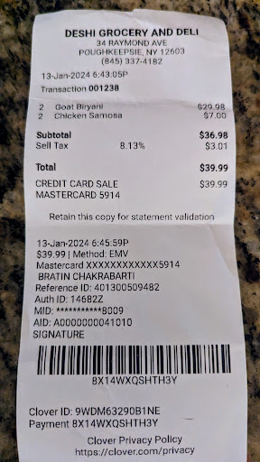 I found this place on Uber Eats. I ordered some goat biryani. I was pleasantly surprised. The biryani was flavorful and the goat was tender. So, I went there next day in-person. My first impression was not a pleasant one. It's a grocery store with a kitchen in the back and 2 tables upfront. From whatever glimpse I caught of it, the kitchen looked extremely unhygienic.i still wouldn't post a negative review, if the food was good. I ordered 2 orders of goat biryani and 2 orders of chicken samosa. The samosa turned out to be too salty. I took one bite, and I had to throw them out. The biryani turned out to be beef instead of goat. The taste wasn't as good as the first time either and the meat was undercooked. The biryani went in the trash as well. $40 down the drain.