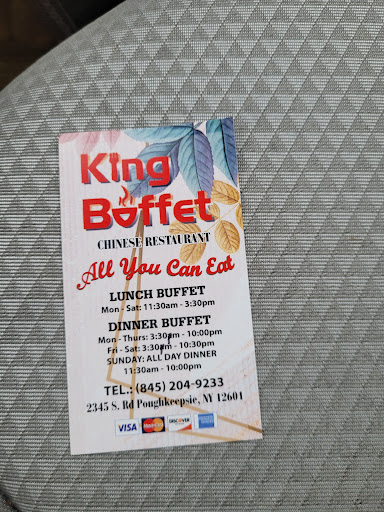 Read moreWife and I came here on labor day around 5pm. Wasn't busy at all. We saw all the poor reviews about them not having trays full of food and food being over cooked and cold. Every try was filled to the brim even by the time we left it was much busier. The only thing I did notice that some of the seafood was kind of cold but since it was just mainly shrimp and snow crab legs that wasn't really a big deal for us. All the Chinese food was hot though. We didn't get any of the Sushi but it didn't really look that great tbh. Chinese food was great like the beef and broccoli/chicken and broccoli, Lo mein, beef spare ribs, and fried chicken wings etc. they had butterfly shrimp with garlic which was really good along with salt and pepper crab $ calamari. The snow crab legs kept getting refilled in a timely manner and my wife and I had 3+ plates. The staff was nice. The only food that we didn't care for was the food in the center by the grill where they had fried shrimp, broiled shrimp, steak, and chicken. The steak looked good but was really tough and had absolutely no flavor. My wife did try the bourbon chicken and said it was good. Bill came to $68 with tip. The manager was really nice too as we were leaving he insisted that we take a small ice cream cup with us even though we were beyond full. Everybody that lives in the area as well aware of this place and the Hudson buffet in Fishkill and I have to say that the king buffet in Poughkeepsie is decades ahead of the Hudson buffet.. The only thing I would recommend to the owner is to use heat lamps instead of LEDs keep the food a little bit warmer but like I said it wasn't really that bad as most people were making...