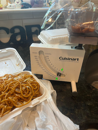 I was also shocked to see there was very little chicken in the chicken lo mein. I’ve looked through the entire dish and put to the side the chicken, and weighed it. Less than 1 ounce. See photos.