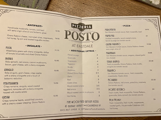 Finally tried this place after passing by many times on our trips to Eastdale. The food was fantastic! The menu is a bit limited to 2 appetizers, a handful of salads, and a variety of 9 pizzas, with a greater variety of toppings offered. Yes, it's pricey. You don't go to Eastdale expecting a bargain. When I looked online prior to visiting, it appeared that they also offered some dessert, but I also had absolutely no room left for dessert. Drinks are basic beers/wines and sodas. I would skip the rose next time. I paid $11 for a single glass when a bottle retails for $13.99, but that's true of any restaurant. We started out with the cheese/olives/meat and jam app, which was really plentiful for 3 people. For pizzas, we had the grana Padano pie and added pepperoni and the Hot Honey pie. Both pies were absolutely delicious and were more than enough for two adults and one child. Before ordering, we asked how big the pies are, so they gave us a good estimate. One pie would not have been enough. The pies are bigger than personal sized pizzas, but they are not as large as a typical carry out pizzeria pizza. Overall, the food was really delicious, and the pizzas were perfectly cooked, and the hot honey pie was absolutely fantastic. It was a great mix from the salty meat, the sweet/hot honey and the roasted garlic. When we are in the mood for sit down, slightly more upscale pizza, we will...