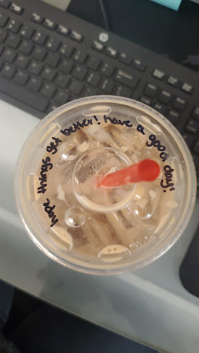 Read moreI love my coffee I've been coming here for a year now the issue I have is that they make most of their money off of ice if you're getting an iced beverage. I've asked for the past six times that I've been here if I could get light ice and I get the same amount of ice each time. I sound crazy but I ask for no ice one time and they told me they could not do that thus indicating that they make most of their money off of ice. also not to be The annoying environmentalist here but you should really ask if somebody wants a straw before giving them one.if said person says they don't want a straw don't nonchalantly throw it out because that defeats the purpose of the environmentalist...