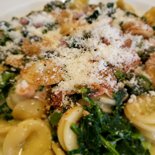 I ordered the orecchiette pasta w/pancetta. My parents ordered seafood dishes. We started w/ wrapped asparagus and all our meals came out fairly promptly fresh made to order.