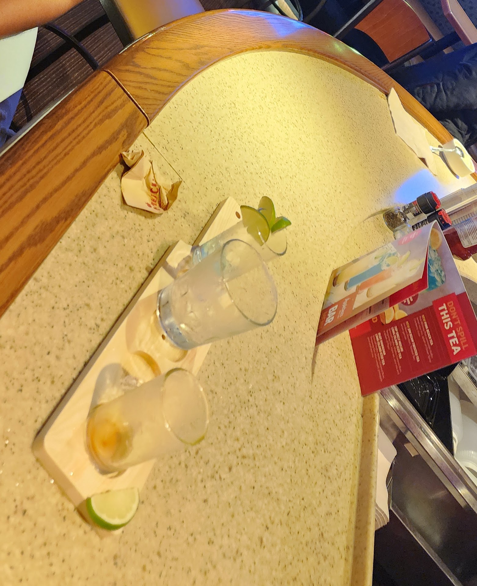 Ā Ā Ā Read morePathetic. We arrived at 7pm and sat ourselves at the bar then waited 20min just to be acknowledged for a drink which came out wrong right off the bat. 15 min later we finally got our order placed. 15 min after that we still did not have our appetizers so server brought fresh fries to kill the time...OK. 10 min after that we got our app. The double crisp chicken wings were 1/2 crisp, veiny and tough but the flavor was there. In all fairness the fish n chips was good but missing the cole-slaw that was advertised as part of the meal. When I asked about it, our servers response was an UN-apologetic "We're all out", no substitute offered. The other meal, an 8oz bourbon steak with sauteed onions & fries was deplorable. Only about 5 - 6oz of the steak could be chewed the rest was grizzle. It tasted nothing like bourbon glazed steak.The fries served on my actual dinner plate were old. As for those sauteed onions, it was painfully obvious that the 'chef' was not a fan of onions because what was on my plate was a pile of sauteed onion skins, COMPLETELY UN-CHEWABLE! By 8:40PM the ordeal was over. This location bares NO resemblance to the inviting advertisements on TV. The staff is VERY UNCONCERNED and I'm sure that the 'Chef' needs to be replaced. If you cannot serve 100 people all at once then perhaps you should limit how many you seat. The entire staff seemed disconnected and overwhelmed to a point of NUMB. NO APOLOGIES OFFERED....NO APOLOGIES NEEDED, I...
