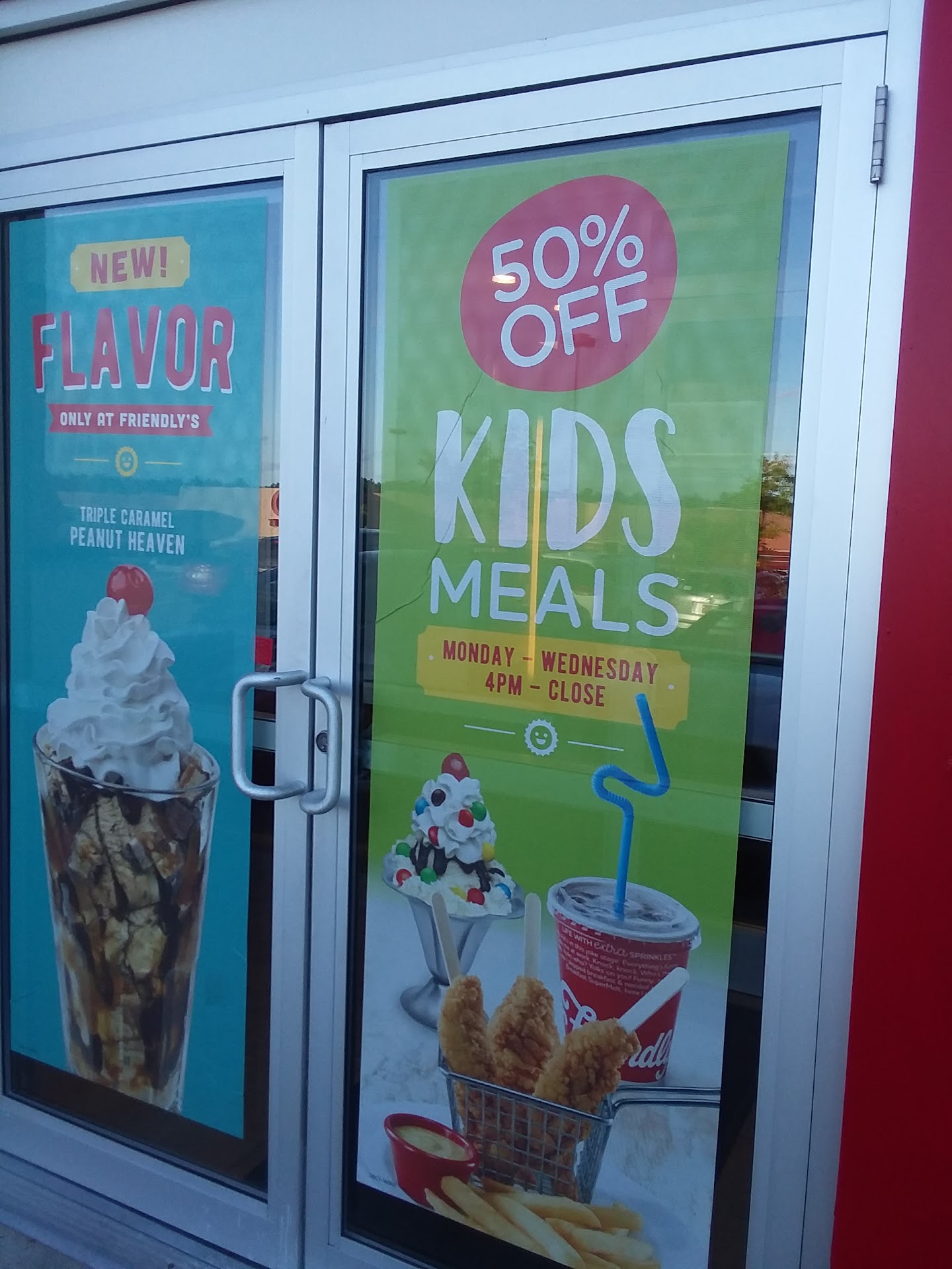 I will be reviewing Friendly's in Queensbury, New York, a nice restaurant with delicious food. The food they serve is: salads, burgers, soups, chicken, sandwiches, seafood, and quesadillas. They also have a big selection of appetizers. They have a kids menu with mac and cheese, burgers, hotdogs, chicken, quesadila, and grilled cheese. They're most well-known food is their ice cream. Friendly's is not a fast food restaurant. The environment is nice and chill, with many pictures and difterent types of music. The pictures are of old Friendiy's restaurants and kids eating ice cream. The pictures are black and white, but some of the ice cream in the pictures are in color. I find this a little strange. Some of the songs that are played can be downbeat or sad, but others are upbeat. The rest of the environment is bright and cheerful, just like the name Friendly's. It is on a hill near Aviation Mall, and next to Aviation road. This is a nice view from inside the restaurant The service was pretty good. The food doesn't come quickly, but it doesn't take long to come either. lt's enough time for it to cook, and still not leave people waiting in the restaurant for two hours. However, a waitress once spilled some food, but was still really kind. Also, one time when I ordered applesauce, I got fries instead. I told them their mistake and they brought out the applesauce a few minutes later. Other than that the serice is realy good. I rate the food 9 out of 10. I took a point off because nothing is perfect. Everything has tiny flaws. The food isn't undercooked, but it isn't burnt either. The fries are realy good, and it's hard to find good fries these days. The ice cream is delicious, but really cold. It's supposed to be cold, so that's not a bad thing. I'm not too happy about the food dyes in the toppings, but that's with almost any ice cream place. Friendly's partners with other brands such as Oreo and Kraft. This gives the food a familiar and delicious taste. I would definitely recommend this restaurant to friends and family. It is kid friendly, but also has food for people of all ages. The servers are often very nice. It's also a nice place to hang out with friends and have lunch or dinner. It's also a good place to have a meal by yourself. If you go, you'll most likely...