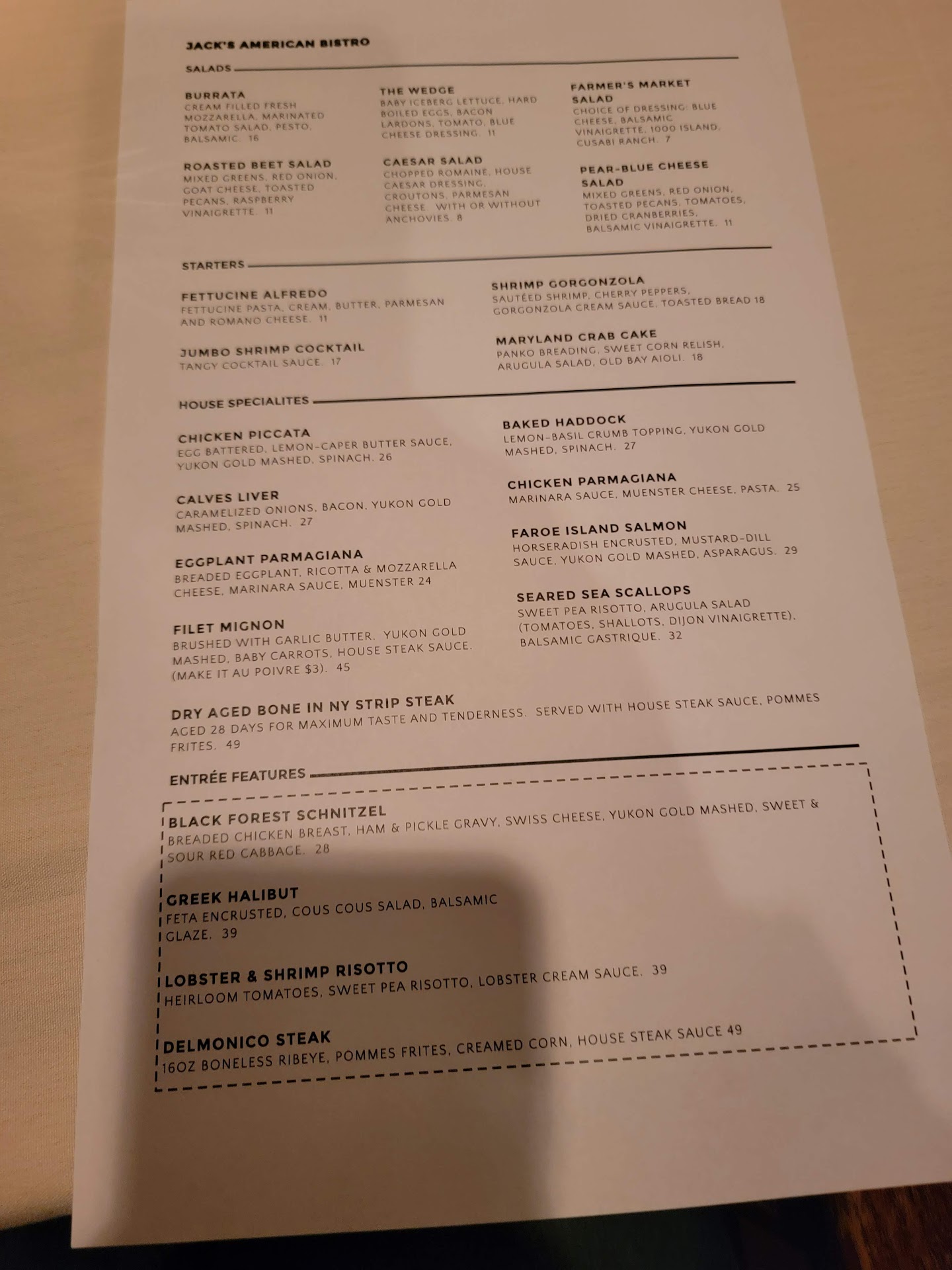 Read moreExcellent food and service! We hadn't been to Jack's in a few years and decided to stop in spur of the moment on a Friday evening. We didn't have a reservation and they were pretty much booked, but the host graciously ushered us over to a high-top, which doesn't really work for my arthritic knees so we asked to sit on the couch - it had a little coffee table in front, and he happily obliged.