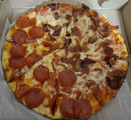Read moreThis is my go to place for pizza if I am just getting pizza for myself. It was about $18 for this half pepperoni, half bacon, pizza, and a homemade brownie on the side.