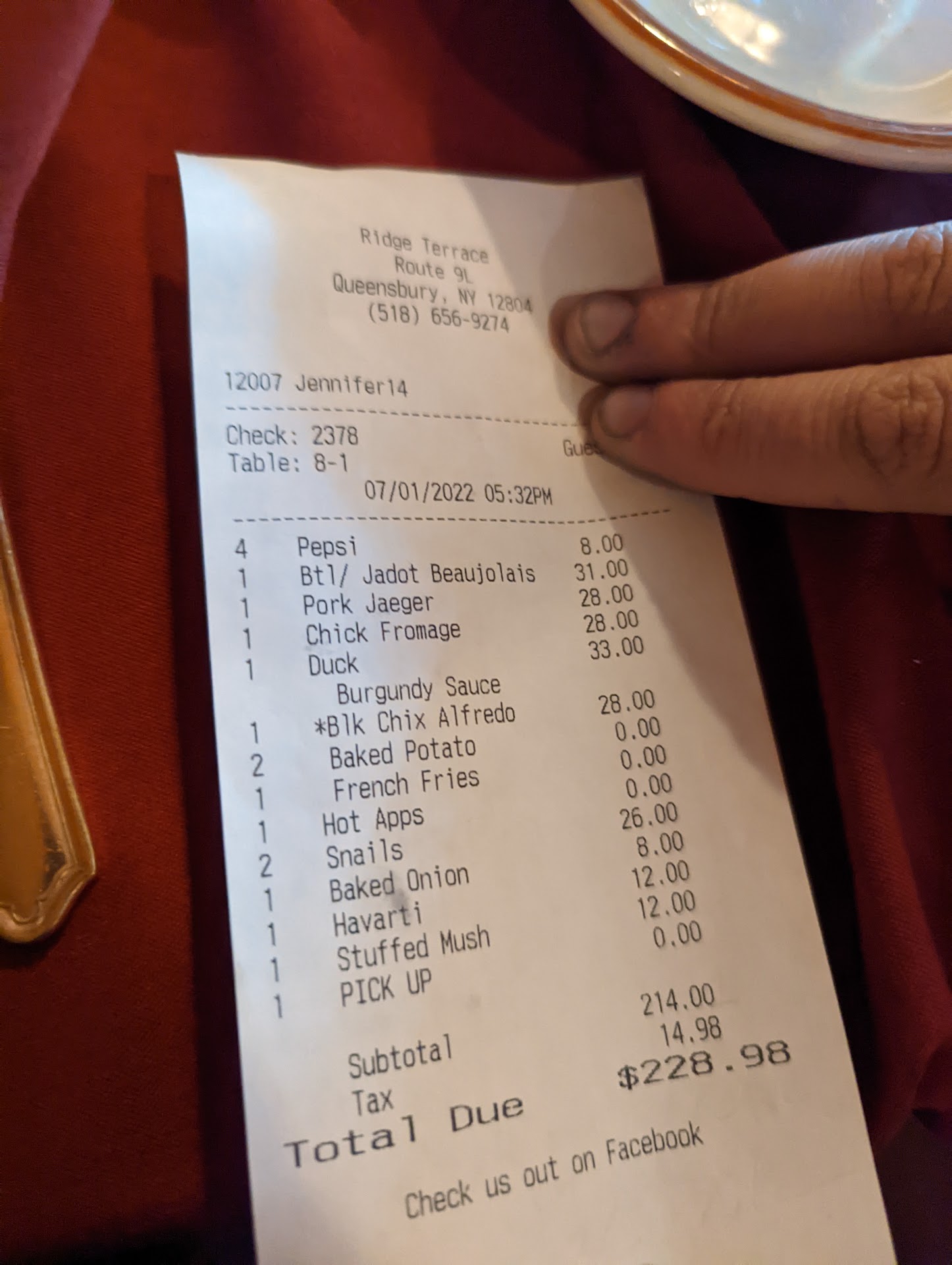 We consider ourselves seasonal locals and have been to The Ridge Terrace many times. Unfortunately, after last evening, I doubt we will be back. It started when we told the hostess we had a reservation and she said “ right this way” then said, “ you wanted that table over there, right?” I said “ “ yes” and she said “ menus are on the table “ and walked away. We stood there in the main aisle thinking maybe she would come back and escort us to the table but realized quickly, she wasn’t coming back and to seat ourselves. The waitress, with little to no personality, took our order quick enough and unfortunately we were told “ we just sold the last Prime Rib”. My husband substituted with a NY strip that was hardly a substitute and mediocre. Then there was my meal. When we ordered, I clearly said to the waitress “ We will start with the stuffed mushrooms and I will have the Seafood Au Gratin”. The waitress then asked if I wanted kidney beans or coleslaw, dressing for my salad , and baked potato or fries. Now it is important to note Seafood AuGratin is listed twice on their menu, as an appetizer and as a dinner. Since I was offered the salad, coleslaw and potato, it was quite clear to me I was ordering Seafood AuGratin as dinner, not to mention I said “ we will start with the stuffed mushrooms “. Dinner begins to come out and she brings the baked potato and says “ I was told the potato does not come with your dinner and I will have to charge you”. I was a bit confused and told her to take it away. Then the Seafood AuGratin comes out and it is so tiny I could eat it in 4 bites at most. I then realized it was the Seafood AuGratin APPETIZER. I did eat it. But when the waitress came back , I asked her “ was that the Seafood AuGratin Appetizer” ? And she told me it was and that was what I ordered??? I told her that I was angry and I know what and how I ordered it ( as above)and we were there to celebrate our anniversary. She put down the check and walked away after saying “ sorry, but I fixed it to charge you as an appetizer “. I have no idea where the mistake was made, the waitress or the kitchen, but it is unacceptable. I was brought the salad and the coleslaw, but then all of a sudden the potato is an extra charge and Seafood AuGratin became an appetizer. Extremely disappointed in what use to be our favorite Lake George restaurant. I guess I shouldn’t set my expectations so high, as when you do, you clearly can get...