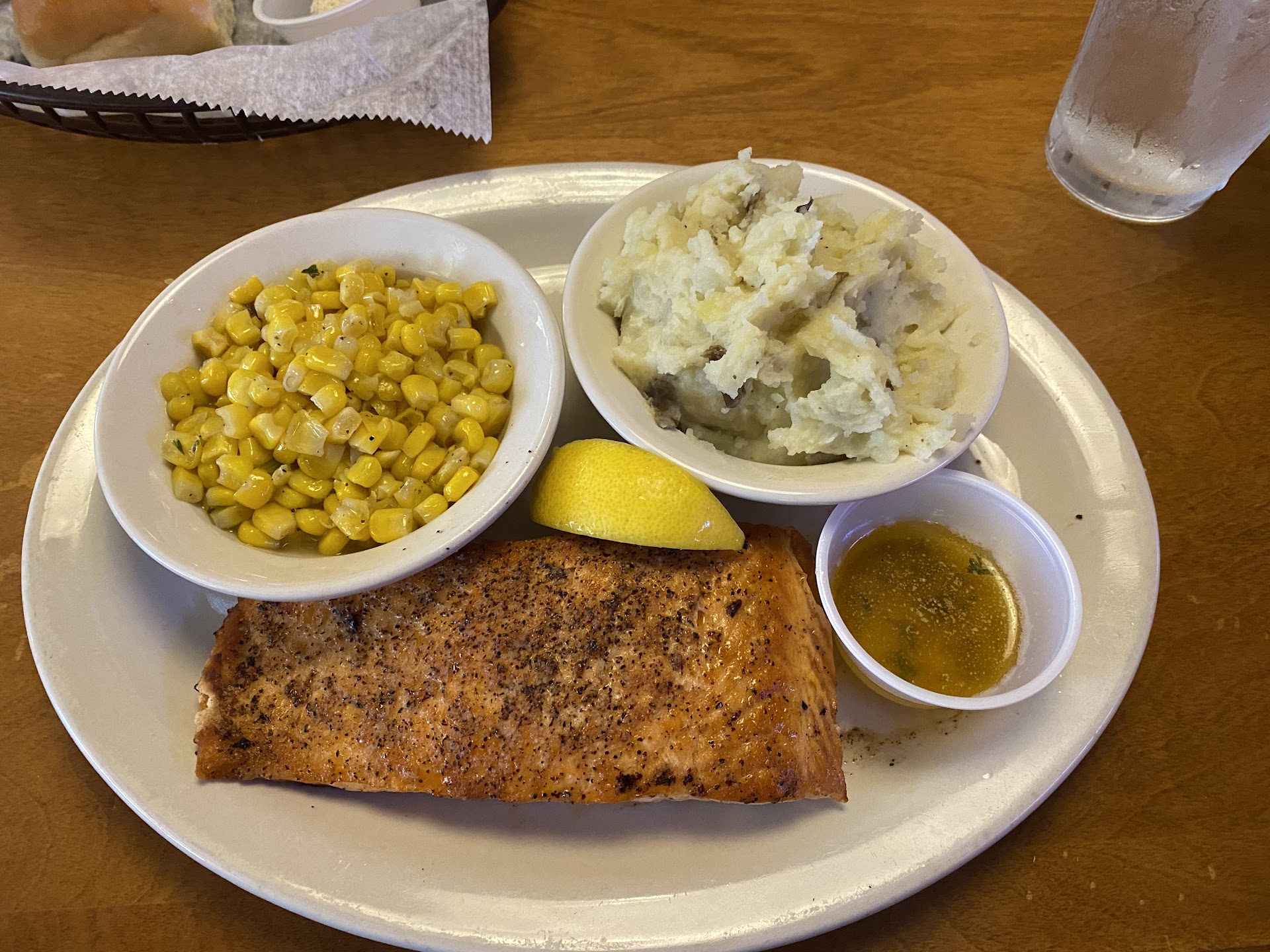 Ā Ā Ā Read moreEx and I dined at this Texas Roadhouse location for the first time over the weekend. The parking lot was mobbed, it took a few minutes to find a place to park an oversized truck. We were skeptical that we would even get a seat with the lot so full. We walked in about 4:30 and were seated right away in a nice booth. I think it was Elliott who waited on us and he came over as soon as we sat down. He was friendly and professional. He took our drink order while we looked over the menu. I prefer Salmon/seafood (not fried) and my ex prefers large Steaks. Since the Red Lobster Iāve been eating at 50 years closed recently, itās hard to find a nice place in my area to eat at that satisfies both of us. He ordered the 20 ounce Ribeye with Baked Potato & Applesauce and ate everything. He said the Ribeye had more fat on it compared to when he eats it at the Colonie location. Next time heās going to order the 23 ounce Porterhouse Steak. He ate 3 of the 4 rolls with the (honey?) butter and liked them. I didnāt try either. I ordered the 8 ounce grilled Salmon with Mashed Potatoes & Corn for my 2 sides. I couldnāt believe how delicious the Salmon was!! Since RL closed, this is my new favorite Salmon dish that I will be ordering for takeout several times a month!! I was so pleasantly surprised!! The mashed potatoes and corn were also very tasty!! This meal portion is enough for 2 meals for me. Iām having my leftovers tonight. š When we ordered our meals, they came out ready & hot within 15 minutes. The bar at this location is smaller than the Colonie one, and was filled up. The restaurant was very noisy due to the amount of people inside. When we were leaving there was standing room only, a long waiting list, and people outside walking around waiting for a seat. We saw a few people walking up to the (outdoor) Takeout counter getting their food to go. When we left the parking lot there were cars parked in the car-side to go spots waiting on their food to be brought out to them. Both of these are very convenient options!! I already loaded the Texas Roadhouse App onto my cell and signed up as a VIP. You can get on the waitlist when youāre on the way to dine in. You can place an order for pickup as well from the App. Today, I received an email for a free appetizer to use when dining in or getting takeout. We will definitely be back to this location!! Awesome job, Queensbury Texas Roadhouse!! ššš See you...
