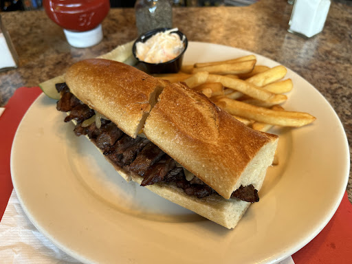 Today was a beautiful day. I live in North Jersey and I grabbed my camera and started driving. I wasn't sure where I was going to stop for lunch but I ended up passing this place and then made a U-turn and ended up going back to try it. I have always wondered how it was. Although it looks deserted in my photos, there were many people sitting outside enjoying the weather. I chose to sit inside — at the end of the bar near the window. The bartender was taking care of the folks inside and also tending to the people outside and he did a great job. I ordered the French Onion Soup and a Steak Sandwich with Fries. Everything was delicious. The French Onion Soup was GREAT... and I'm pretty picky about my French Onion Soup. The cheese AND the soup itself was delicious. Now, the steak sandwich was NOT a cheesesteak but slices of steak on a roll with cheese on the roll itself. It was very good. I really wasn't sure what to expect but I enjoyed it. Just don't order it, expecting a traditional "cheesesteak". The fries were great and I also ate the coleslaw and the pickle. Man, I was STUFFED.