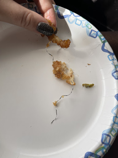 Read moreWe ordered from here for the first time on 10/31/22 because it had generally good reviews and we enjoyed the food it was hot and taste, we order dumplings, fried rice, general tso chicken, and lo mein, we tried to order shrimp toast but they were out of it. Today for lunch I had the left over general tso chicken and some lo mein and found a thin piece of metal inside a bit of the chicken. I am extremely surprised and confused as to how exactly this got into the middle of a piece of chicken. I am disgusted and we will not order...