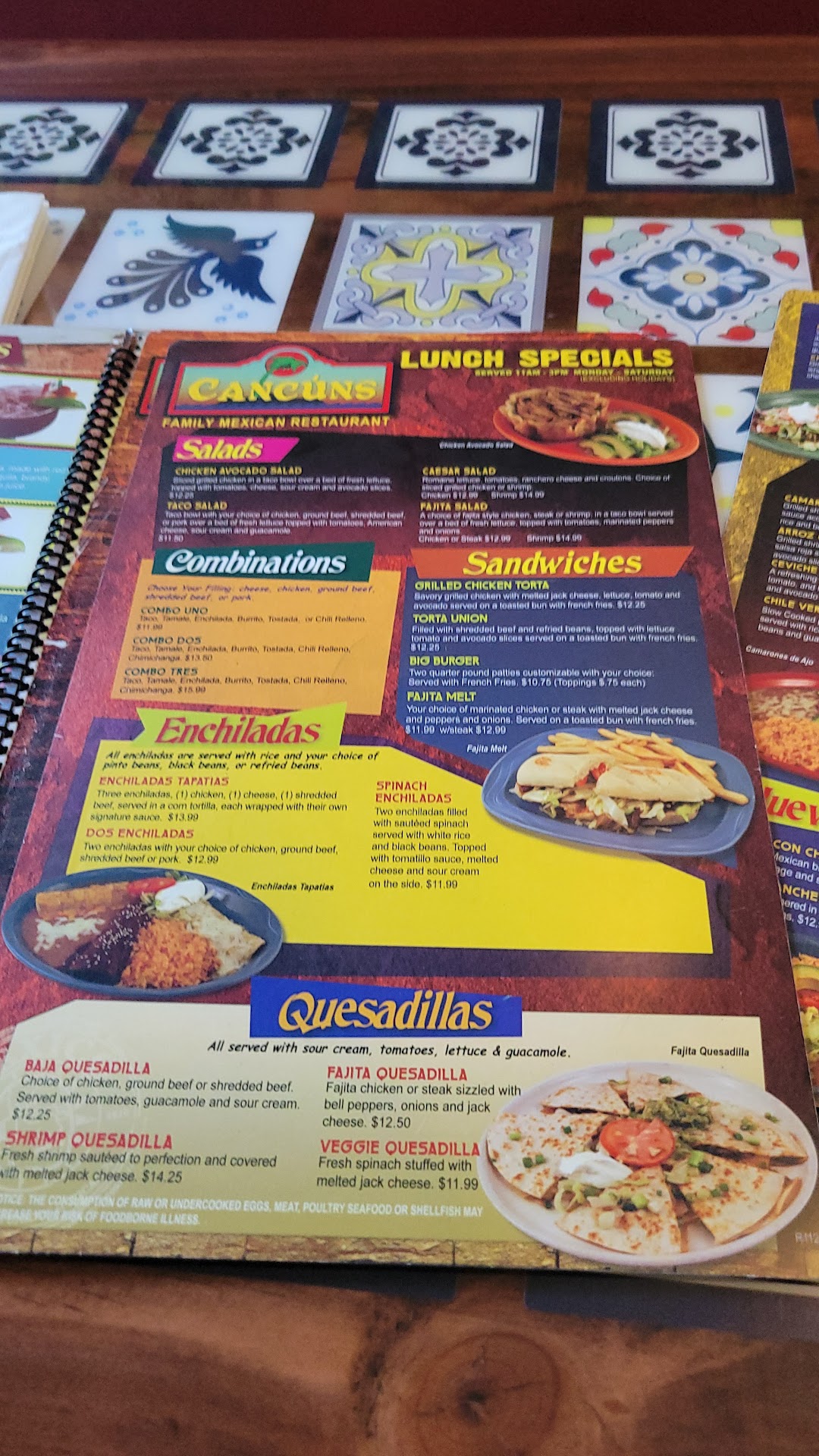 Cancun's, is a popular but mediocre Mexican restaurant that seems to prioritize speedy service over the quality of food. With an overwhelmingly extensive menu and passable dishes, Cancun's stands out as a spot to drop by for a quick meal when you're craving Mexican food, but may not leave a lasting impression as a go-to location for authentic cuisine.