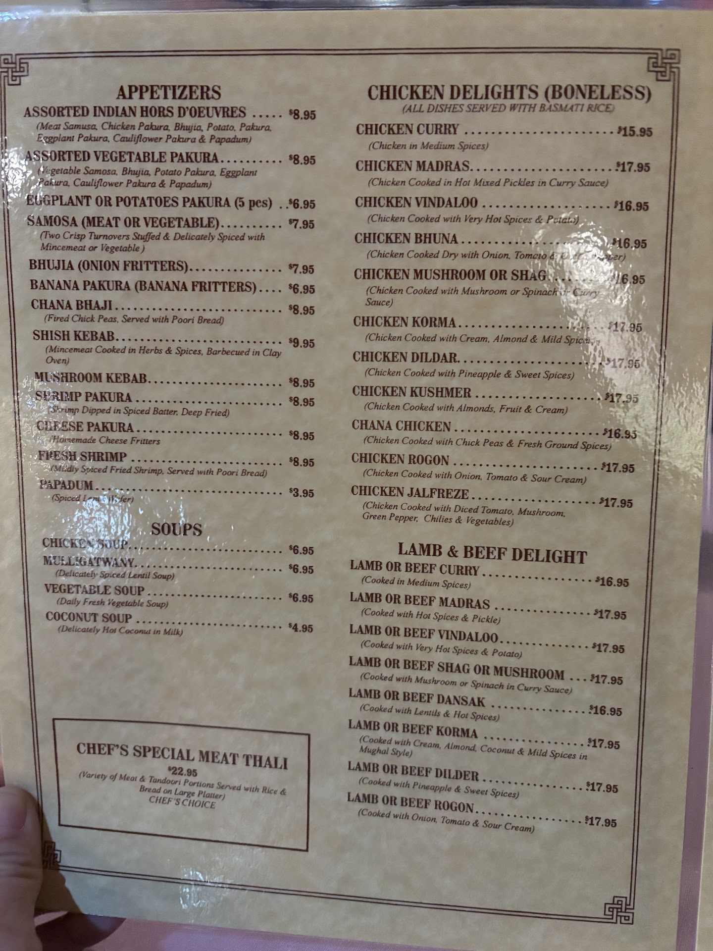 Ā Ā Ā Read moreA fine location for an Indian restaurant (they have the market cornered in that area), you would think after years of packed Sunday and Tuesday buffets, and steady flow from locals and travelers alike....that the owner would be a bit more pleasant, the service a bit more proficient, and the food a bit more consistent. After coming here regularly for the past 9 years, you'd think the owner (see? not even on a first name basis) would part with a smile or a thank you once in a while. No such luck. He is the same crabby man he has been since day one, humiliating his waitstaff in front of customers, and refusing to even LOOK happy. Consistent, but not the kind you are looking for. The food is good. Sometimes really good. My advice would be to skip anything but the Buffets, that's where you get the money's worth, and also try to arrive when it first opens. Not having Chicken Tikka Masala regularly on the buffets though is quite odd, and left completely to chance. The chai tea included with the buffet is delicious, and Tikka Masala aside....the food is usually tasty. The service is mostly poor. I am guessing this is the result of having such a fiery tempered and unfriendly boss, so I will give them the benefit of the doubt. But I have yet to ever find a server or busser there who seemed to put any effort into making your dining experience smooth and a pleasure. Bottom line. Go to the buffet, don't expect to be greeted kindly (Unless you chance upon who I am assuming is the owners wife, very kind woman) , hope for Chicken...