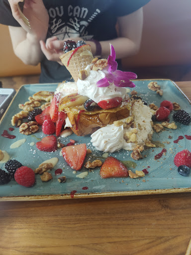 In regards to the food, the coffee options were solid (and clearly explained on the menu for those that are unfamiliar with what each drink is) but the only vegan option we had available was a modified veggie skillet. This means a skillet with the eggs & cheese removed, leaving potatoes and some chopped up veggies. Here's a solid suggestion for any breakfast place looking to be more inclusive to dietary restrictions, buy a pack of veggie sausages and Just Egg (it's a brand of egg replacer available at most large grocers now) and keep it in the fridge. You may think there are only a few vegans out there but you'd be surprised. Feed the exception as we generally dictate where the whole party goes.