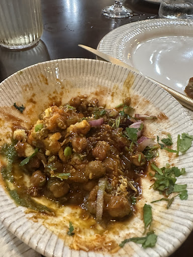 To keep it short, wait time was long, food was hit or miss, and service was ok. The Pani Puri (hollow balls filled with potatoes and vegetables) and the Shabnam Ke Moti ( house special mushrooms) were both a bit disappointing. That said, the Samosa Chaat was excellent and although it was an appetizer we’d eat that as a dinner- it had great flavor. The garlic naan was really good so I assume all the naan options would be as well. We had pomegranate mocktails were super yummy.. Overall, we would go back and try some other choices from their very extensive menu. The ambiance is just fine, the bar is nice, but would have been nice to see some more Indian decor and music. The owner came around and checked in on the patrons, as they were aware that they’re still “ working out the kinks. Definitely give it a try. Just maybe give them a...