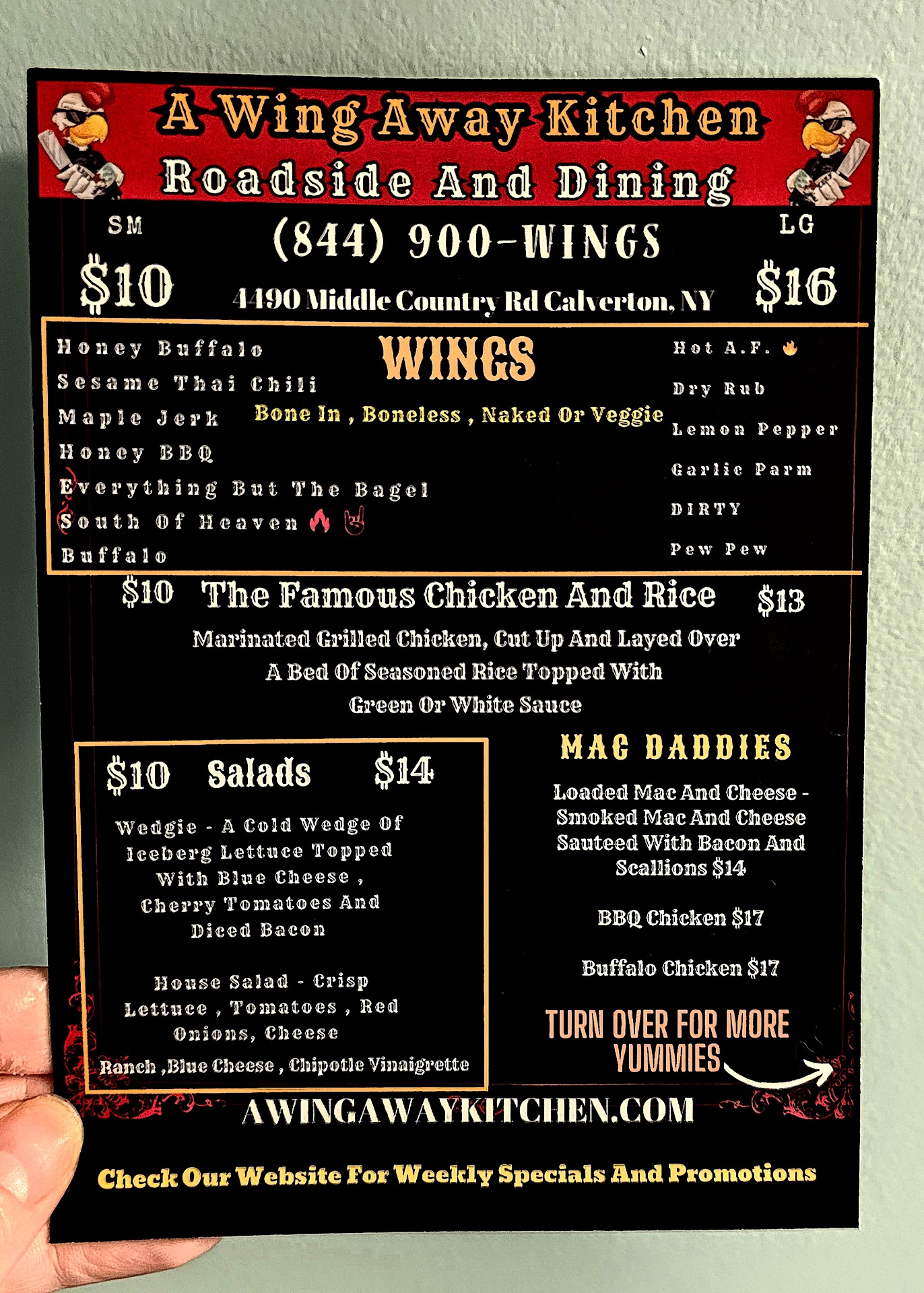 I was at work and ordered through Grubhub. After an hour and a half without my order I contacted GH where they told me there was no courier assigned to my order even though I had a notification that one was on the way to pick up my order. They asked if I wanted to continue to wait and I said yes. I then called A Wing Away and spoke with Chef Anthony. He told me my order had been received from GH as a takeout order and had been sitting waiting for it to be picked up. He was provided with no contact information for me other than my first name and last initial so he was glad I called. I explained the GH mixup and told him they should be sending someone. He offered to make me a fresh order which I declined because it wasnât his fault. I called GH back to let them know how my order was received and to confirm that there was in fact a courier going to pick up my food. They assured me it would be in my hands in 20-30 mins. 5 mins later I get a text from GH that my order was cancelled. A few moments after that I get a phone call from Chef Anthony asking for any updates. I told him that my order was cancelled. He told me to give him 20 mins. To the minute Chef Anthony arrived with my order fresh , hot , and delicious! None of this was his fault yet he went out of his way to make sure I received my order. If thatâs not great customer service I donât...
