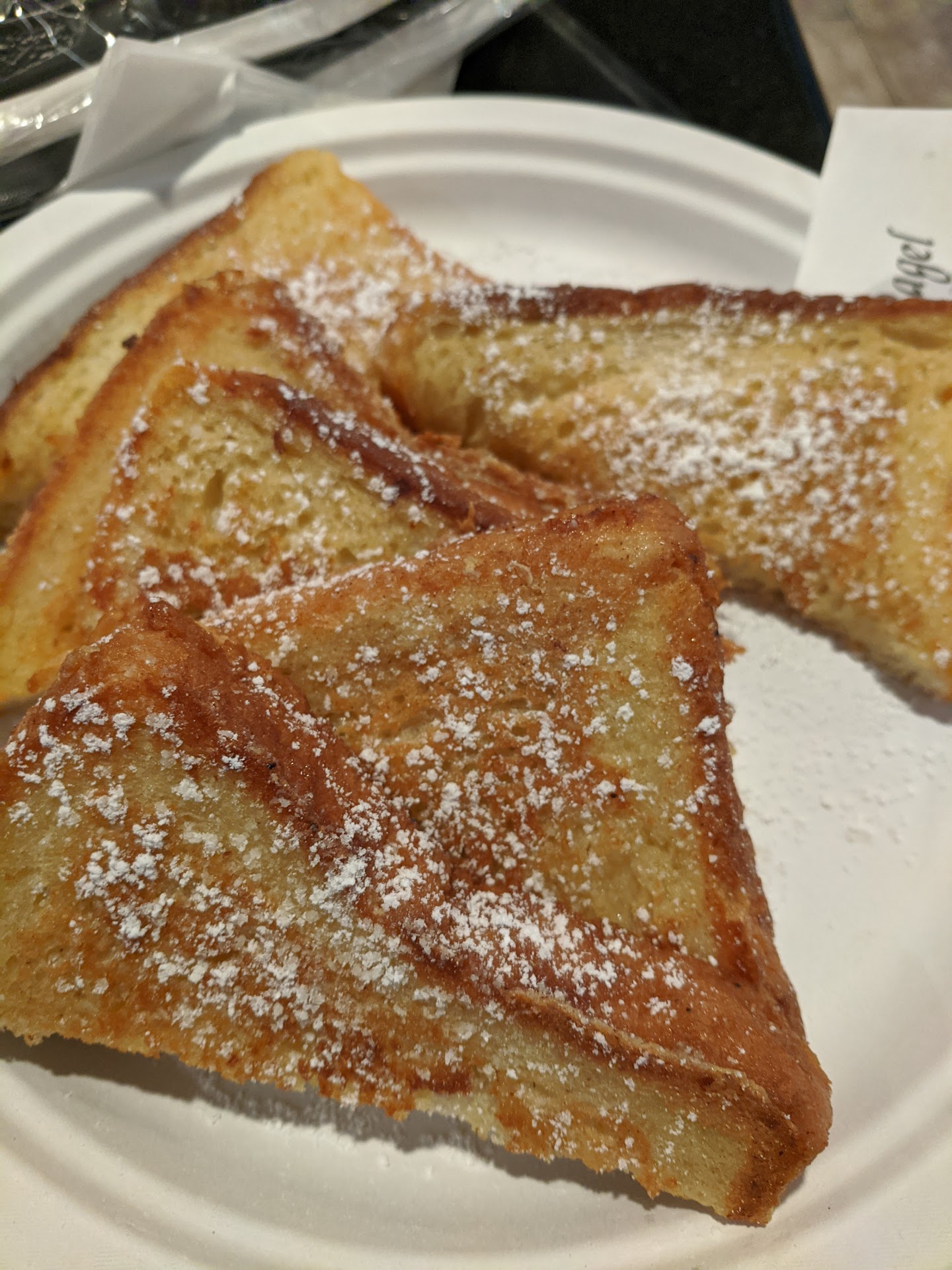 "Good" food and since the weather permitted, my cycling group took our break on the front porch. A bagel and coffee will cost you an hour's working class, Long Island wages...a little less than ten dollars which is under two dollars if served at home. This is not the Hamptons on the other fork after Riverhead. "Gourmet" everything including corn flakes is to be found there where prices are ignored. I will use this as a snack stop for future two-wheeled adventures. Eat MY fruit, drink THEIR coffee (It is "good" java).