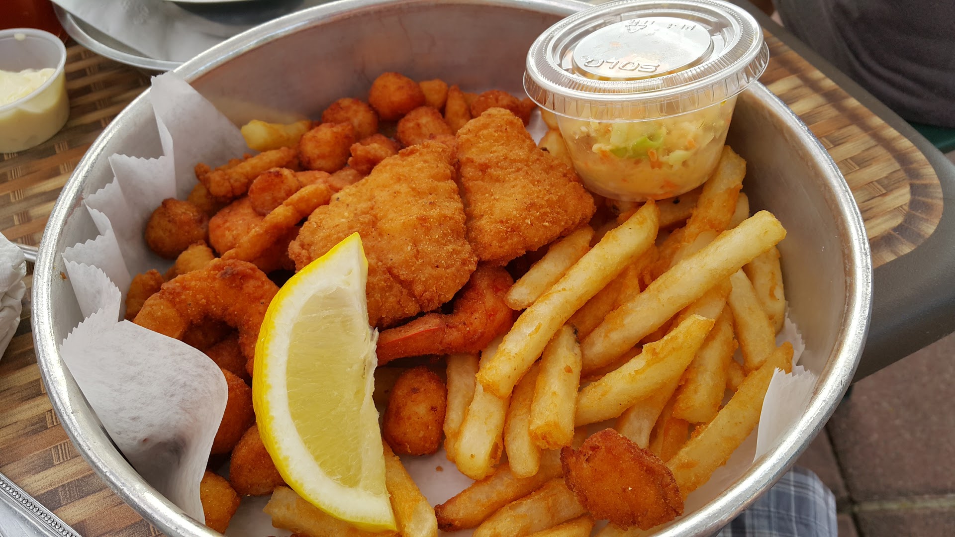But we went to the Riverhead location the other night and had a dismal experience. First and foremost, there was no AC. So we were seated outside, under umbrellas which kept half of us in the shade and the other half baking in the sun. We went early as advised by the restaurant on the phone and were seated and ordering by 4:30. After two people ordered scallops, we were informed by the server that they had just sold outā¦at 4:30. To keep cooler and hydrated in the heat, we asked for some ice for the drinks and were told that they were out of ice.