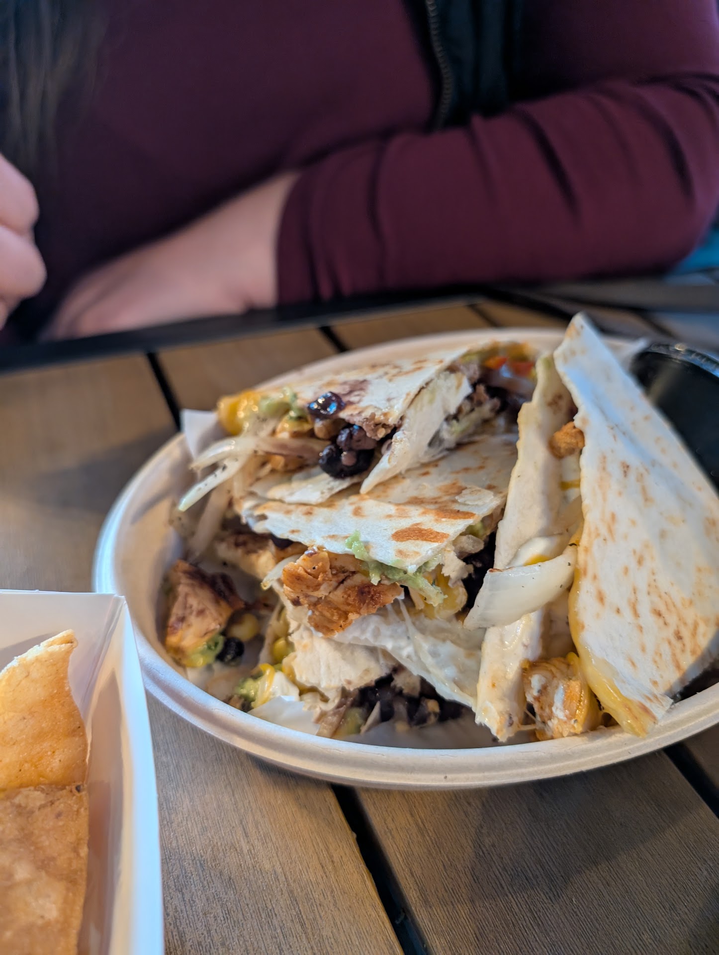 Read moreThis is my girlfriend's favorite Mexican place that she's been going to for years, so I was very excited to see what all the hype was about. Came for an early dinner on a sleepy Sunday. Small unassuming little place, but it packs a lot of personality in it. The atmosphere has great colorful Mexican decor that definitely gets me in the mood for a fiesta. Service was great, very patient and food came out hot, fresh and quick! We started with chips and guac, and they definitely don't skimp on your guac portion like most places do. We both did quesadillas, I got the surf wax Q with chorizo and she got the funchadilla with steak. Both equally delicious, but the cilantro cream sauce on the surf wax was what really sold me, I just might put that on everything. Seating is a little limited (they were also doing some renovations at the time) but they have great to-go containers too if you want to take it and run. Parking is easy right in the attached lot too. Everything on the menu sounded great and I would love to come back here in the summer and sit outside, enjoy a cold hard beverage and down a few tacos. That's what really gets me through the...