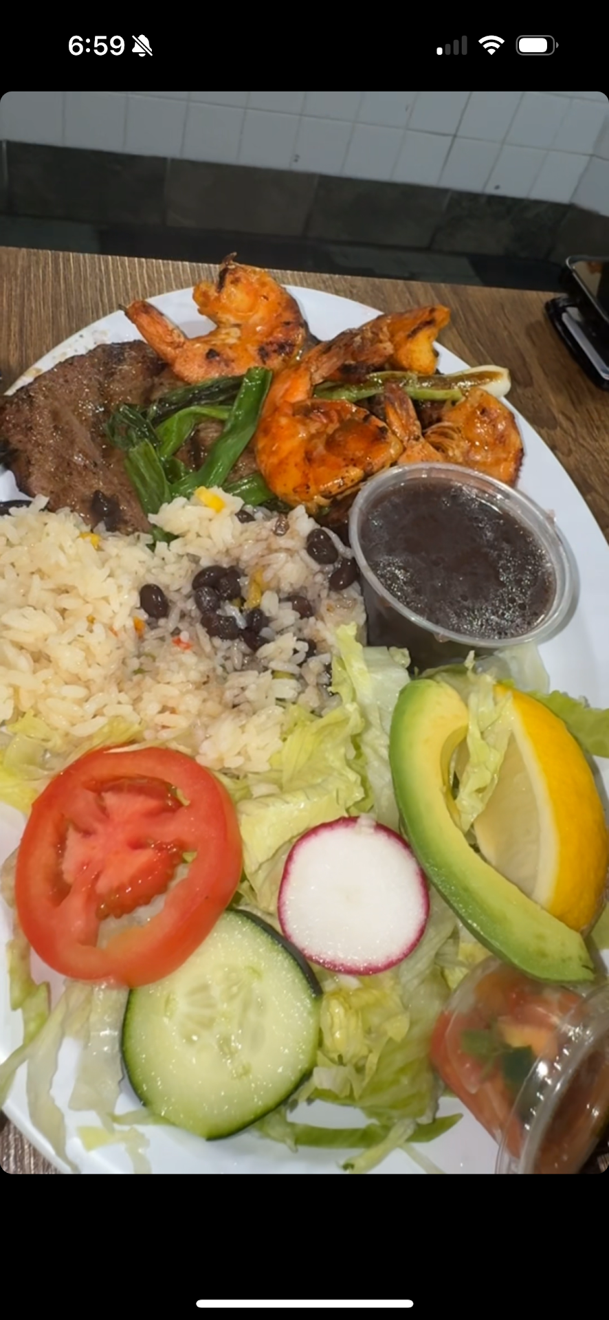 We had Camerones de crema, the kids had Pupusas, we also have Carne Asada tacos, and Pollo tacos. This was incredibly authentic highly recommended by the whole family. The register was very accommodating as eight of us came in and they had people move around in the restaurant so we could have seating. They have indoor and outdoor...
