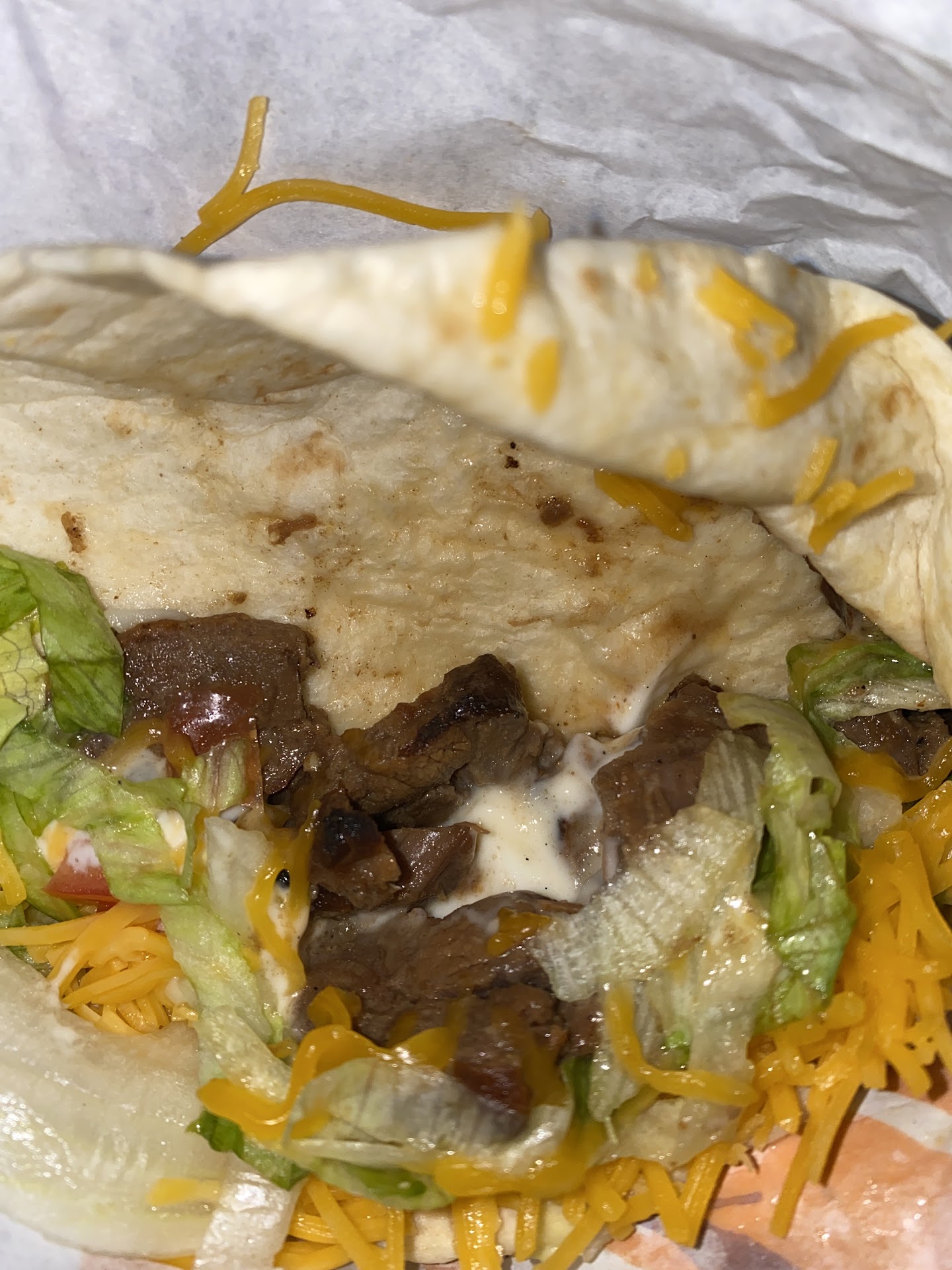 Read moreVisiting from out of town. Stopped at my favorite fast food place to get a quick meal I know I would enjoy but had an awful experience at this location. First off I went inside because the drive in line was into the road and was not moving after sitting in it for 5 minutes. When I went inside I ordered at a kiosk. I order a $5 box and a few other items. Nothing crazy. When I was waiting for the order there were numerous young hispanic men walking around the dining room speaking Spanish and making eye contact with me and laughing. I dont know what they were saying but I thought it was very uncomfortable to be around them not knowing what was being said. I went to get a drink and grabbed some sauces and napkins and next thing I know my hand is completely sticky from something. Another patron had to ask them to refill the sporks since it was completely empty. Once I left and got back to my hotel I opened my box and bag of food and realized they totally forgot the chalupa, which was the main part of the box, and at this point I am not wasting my time to drive back. Save your money and as delicious as Taco Bell is, go somewhere else until this locations management gets this place turned...