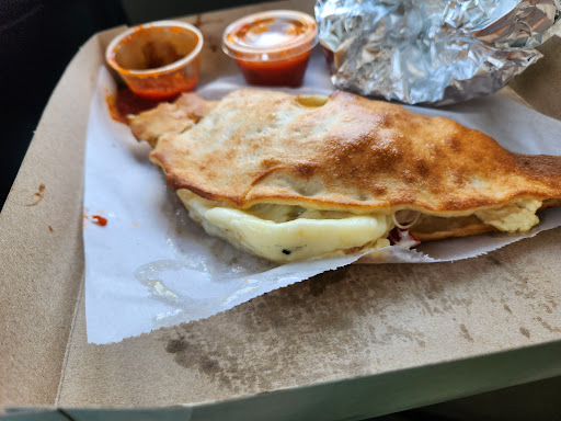 When the calzone cooked, it burst, and the contents slid a little as I carried it to my vehicle. Pretty much everything came out of it, but I was able to slide it back in.