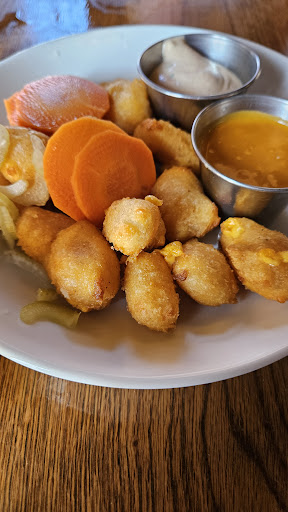 Been here 4 times for dinner after golf and unfortunately it's gotten worse each time. On our most recent visit it took 35 mins to get appetizers, which were not edible. Burgers were overcooked, crab cakes from Aldo's menu were like burnt little pancakes, nachos appeared to have been sitting for quite some time. The shishito peppers were still raw and flavorless. When food was brought out, the waiter never brought forks or napkins. When we asked for napkins and forks, the waiter disappeared for quite some time, despite 3 other waiters coming out to bus and prep the table nearby. I asked if the president was coming as they seemed more focused on an empty table than ours. We finally went inside and got silverware and napkins ourselves. A waiter then came and asked how we were doing, and we replied that honestly the food was terrible and the service wasn't much better. The manager then came out and apologized and was very nice and then offered us dessert to make up for it. We indicated we really just wanted an edible dinner and some silverware. We ended up going to the Qwik Trip for a frozen pizza.