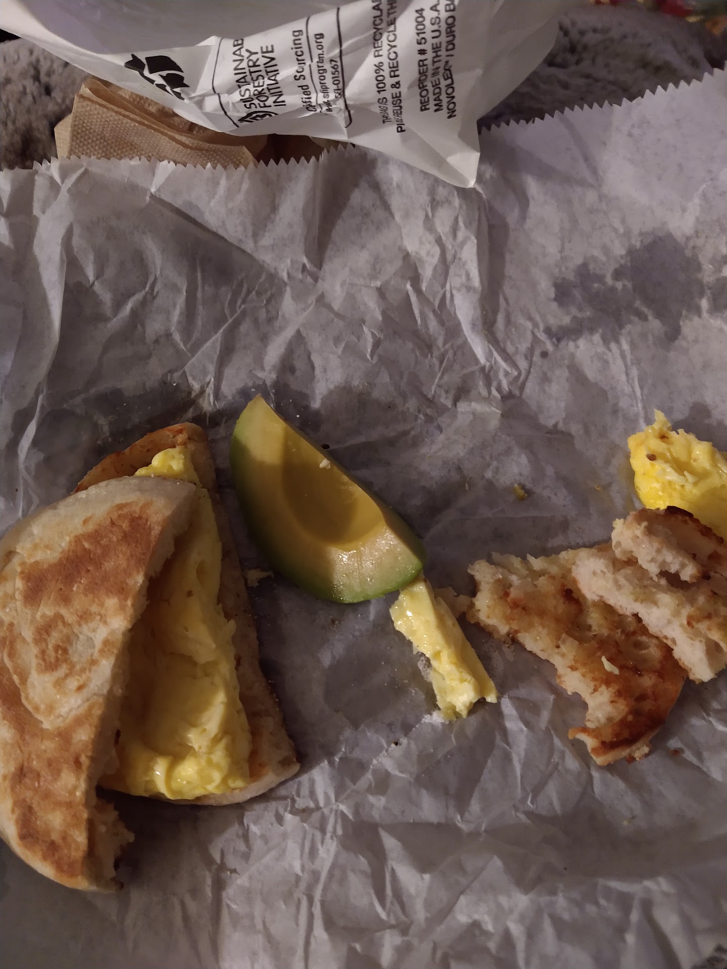 Ordered an English muffin with sunny side up egg and avocado slices (like the picture on the website), and was told they aren't able to make sunny side up eggs for some reason......and wasn't given a reason. Instead, I was given an unseasoned HARD chunk of avocado that was absolutely unripe and inedible and not even sliced.