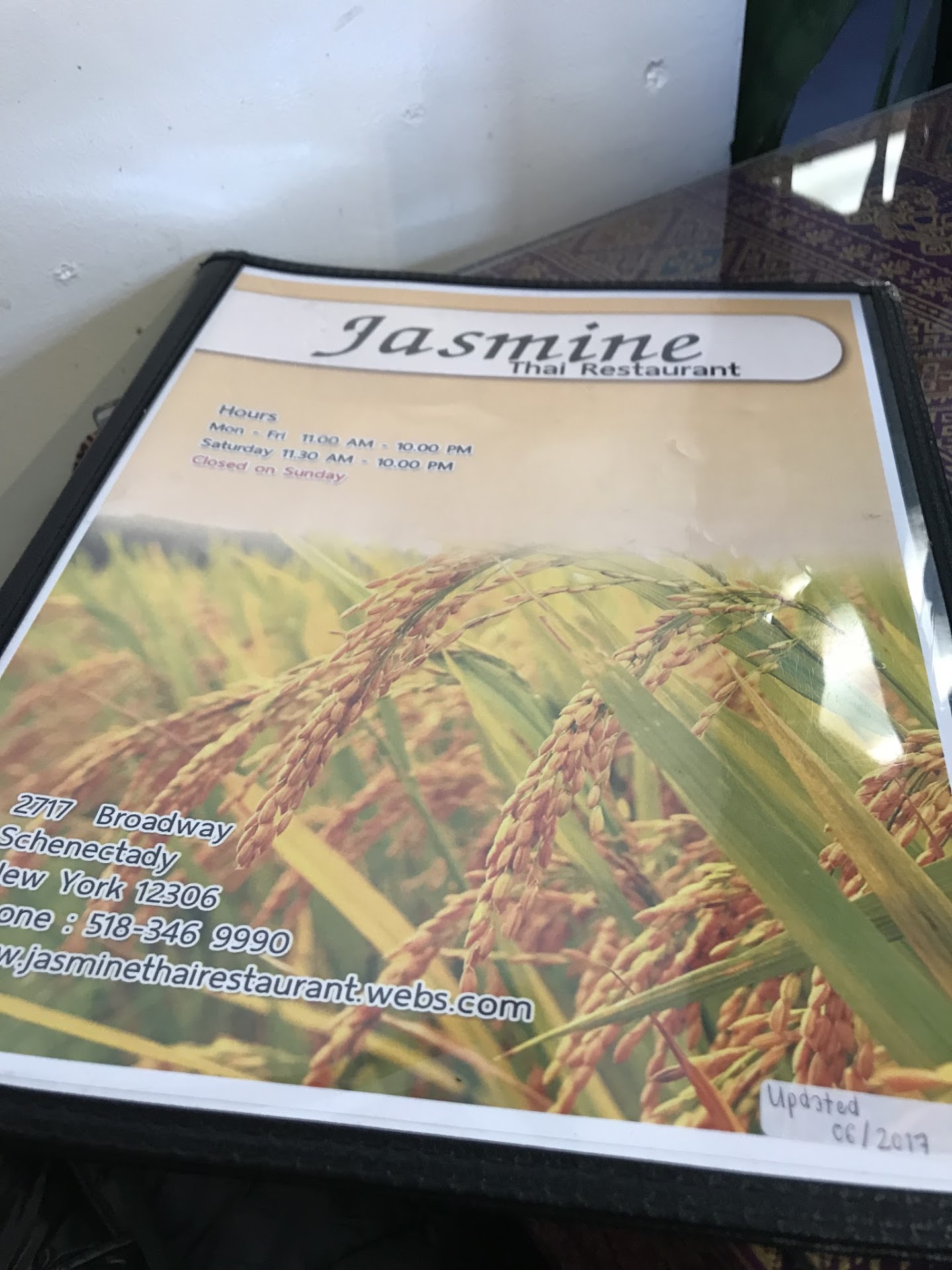 What a wonderful place. Jasmine Thai crafts a warm and thoughtful experience with delicious food. The staff is friendly and very polite. The atmosphere is warm, although the restaurant is a bit old. It's very clean and decorated with Thai images and other family memorabilia. If there's one thing that stands out besides the delicious food, it's how calm, cool, and collected the staff always is. They make great recommendations on dishes, spice level, and one waitress will even remember what I ordered two visits before. I've been there when it was insanely busy and the staff never feels stressed. The food always comes out at a reasonable pace, and always with a friendly smile. The mark of a well-oiled machine!