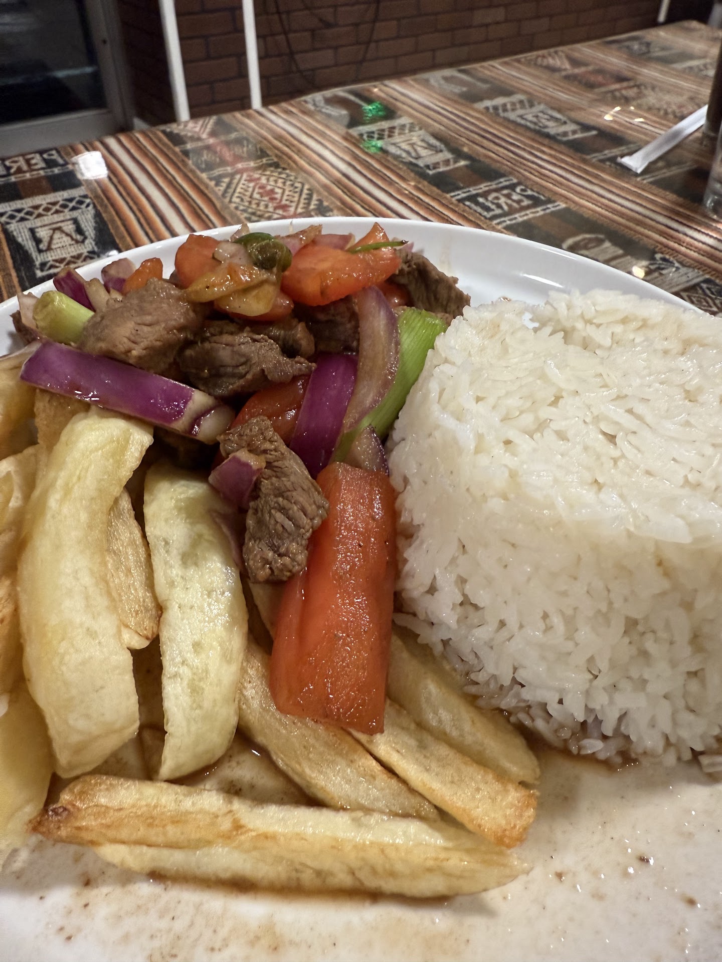 Read moreUpdating this because the first time was take out but since then we have been to dine in twice. It took FOREVER. Forever to get the food and then forever to get the check. When we arrived we were the only ones there besides another family. While finishing our food a couple of more tables got filled but thatâs it. The grilled chicken was still raw inside. My son had eaten quite a bit before I happen to look at his food and notice. Thank God it appears he hasnât gotten sick but we were so grossed out. They did take off the charge for that dinner but decided to charge $30 for two small pina coladas that they didnât know how to make to begin with. Guessing so as not to lose the money from taking off the raw chicken.This rubbed me the wrong way because basically this told me they were not taking accountability for their own mistake. The fried rice is delicious there and their saltado dishes I never had an issue with. Be careful to whoever orders the...