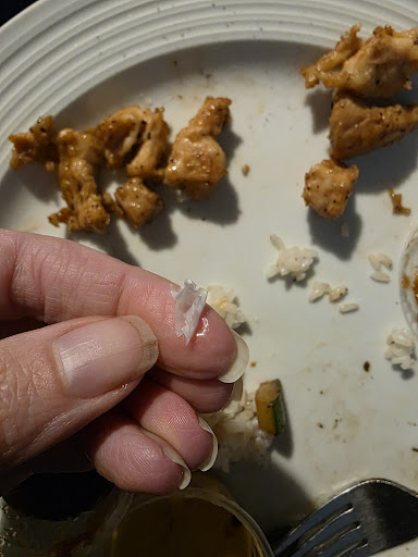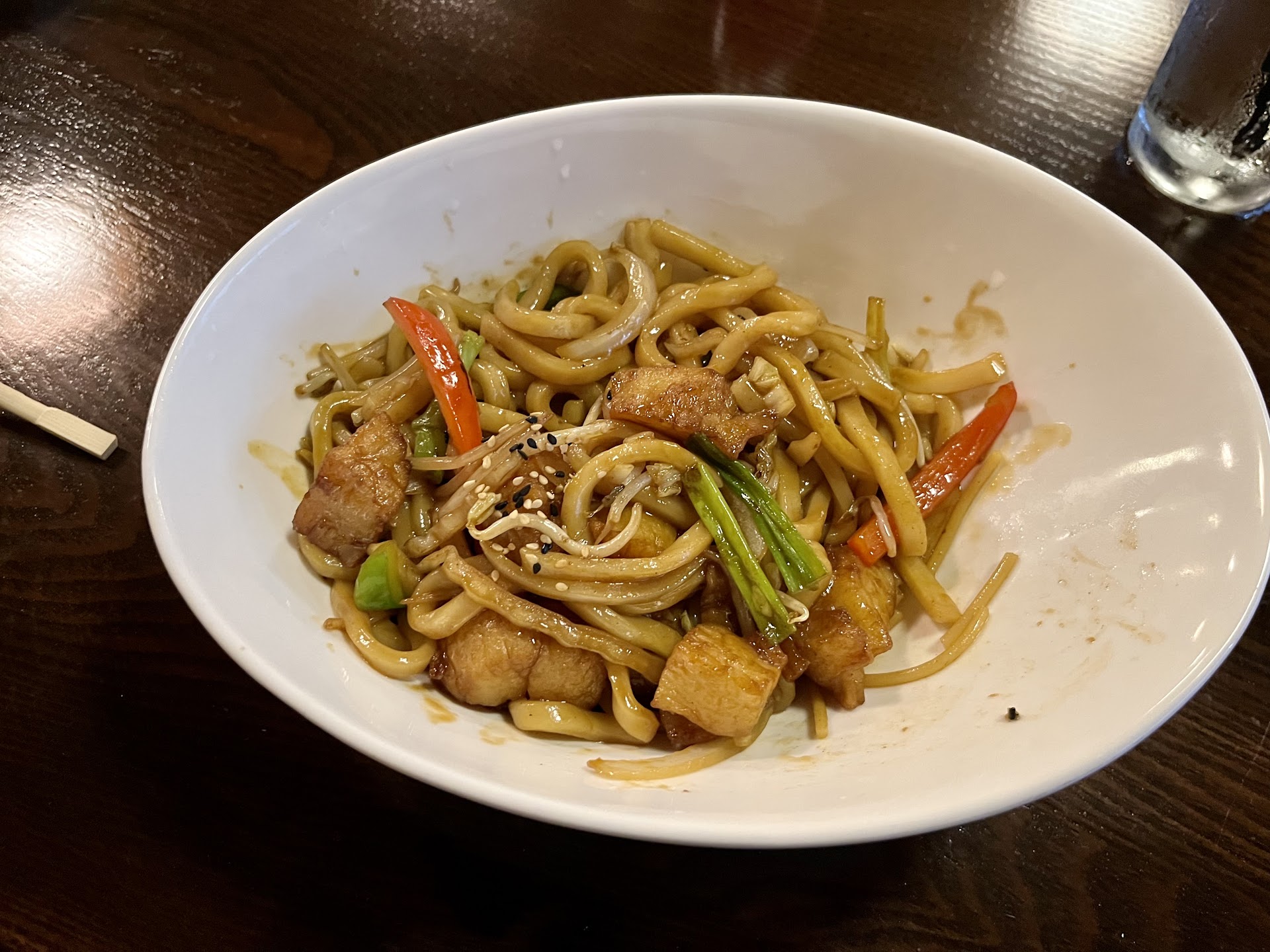 The two-plate presentation could have been better, with the not-spicy salmon crunch maki containing a little too much of the bland "crunch fillings," although, at least they kept their shape. The nigiri were far more disappointing, more than the decor of a single flower and a bit of lettuce could overcome. The rice may have been sticky enough to hold onto the nori wrappers in the maki, but each one of my nirgiri had chunks of rice falling off as I raised each piece to my mouth. The taste of the rice was not as seasoned as I prefer, but sushi rice that does not stick together would seem to be more at home in some sort of Hawaiian poke-bowl-type meal.