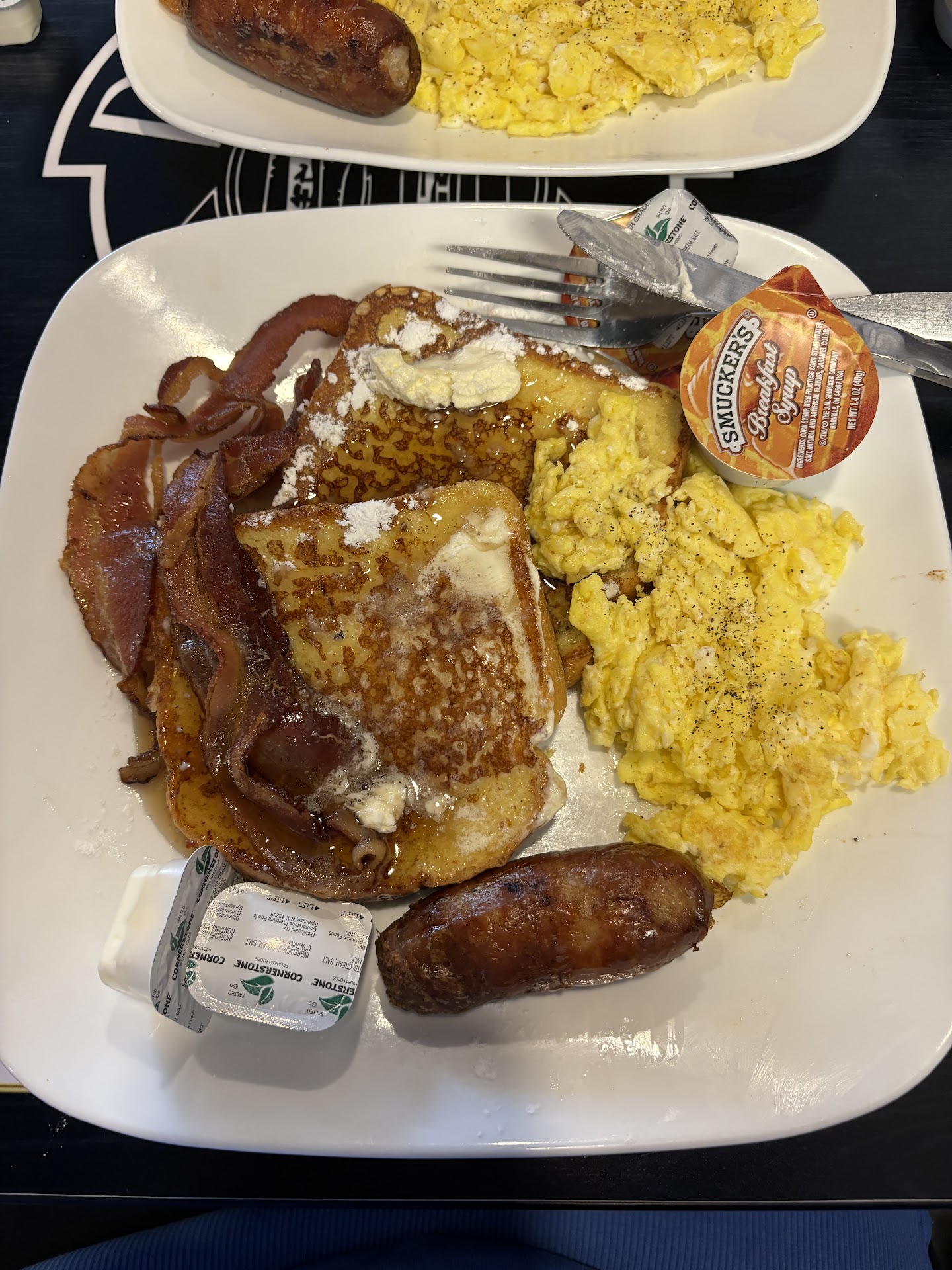 The next time I went back I had French toast, which was excellent, perfectly cooked bacon on the side, and eggs exactly how I wanted them.