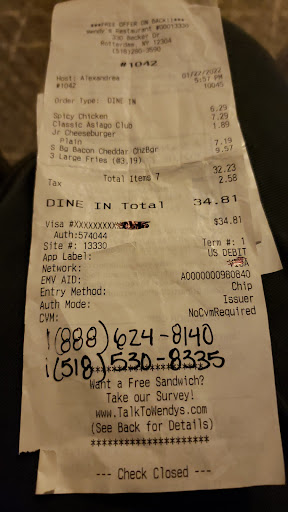 Read moreI understand that what you get is what you get when you go to a fast food place and I try really hard to have patience and give a fast food joint a second chance because maybe the first time I went, they were short staffed or something else happened. This particular Wendy's in Rotterdam by Pilot is the worst fast food place I have gone to yet! To start, whether you go through the drive thru or walk in to order, it takes the place 30+ minutes to complete your order. AND THEY DO NOT GET IT RIGHT THE FIRST TIME!!!! This store needs new management or new employees who can be trained properly to make sure the business runs efficiently and can provide better customer service. Again, I understand that there are days where customer service just isn't going to be top-of-the-line, BUT COME ON!!!! Every single visit and it's the same service; AWFUL!!!!!!! Management really needs to reassess this particular location because within the last year, it has gone down hill and has not been a pleasant experience. Good luck. DO NOT RECOMMEND THIS PLACE. You are better off going across the street to Subway or the Pizza Place! You'll get much better service at those places! I feel sorry for all the truck drivers who want to get a burger and have to wait 30...
