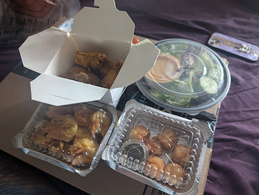 Ordered online for pick up - chicken wings, shrimp shumai, crab Rangoon and a garden salad. I have been wanting chicken wings comparable to my favorite spot which closed down and I figured I'd give these a try. I have this obsession with Asian style (or Thai) wings with peanut sauce.